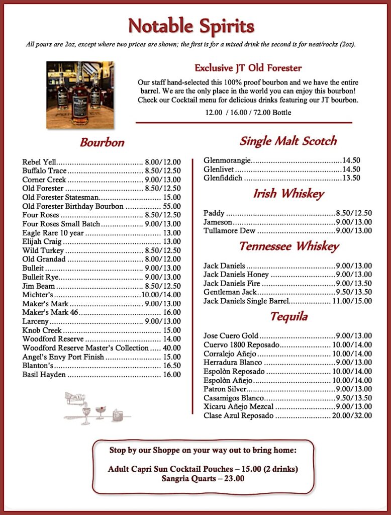 Exclusive Old Forester Bourbon: Our staff hand-selected this 100 proof bourbon and we have the entire barrel. We are the only place in the world you can enjoy this bourbon. Tasting notes of fig, maple, and caramel with a light hint of sweetness on the palate. The finish is smooth with a hint of spice. Click here to see our Special Bourbon Cocktails.